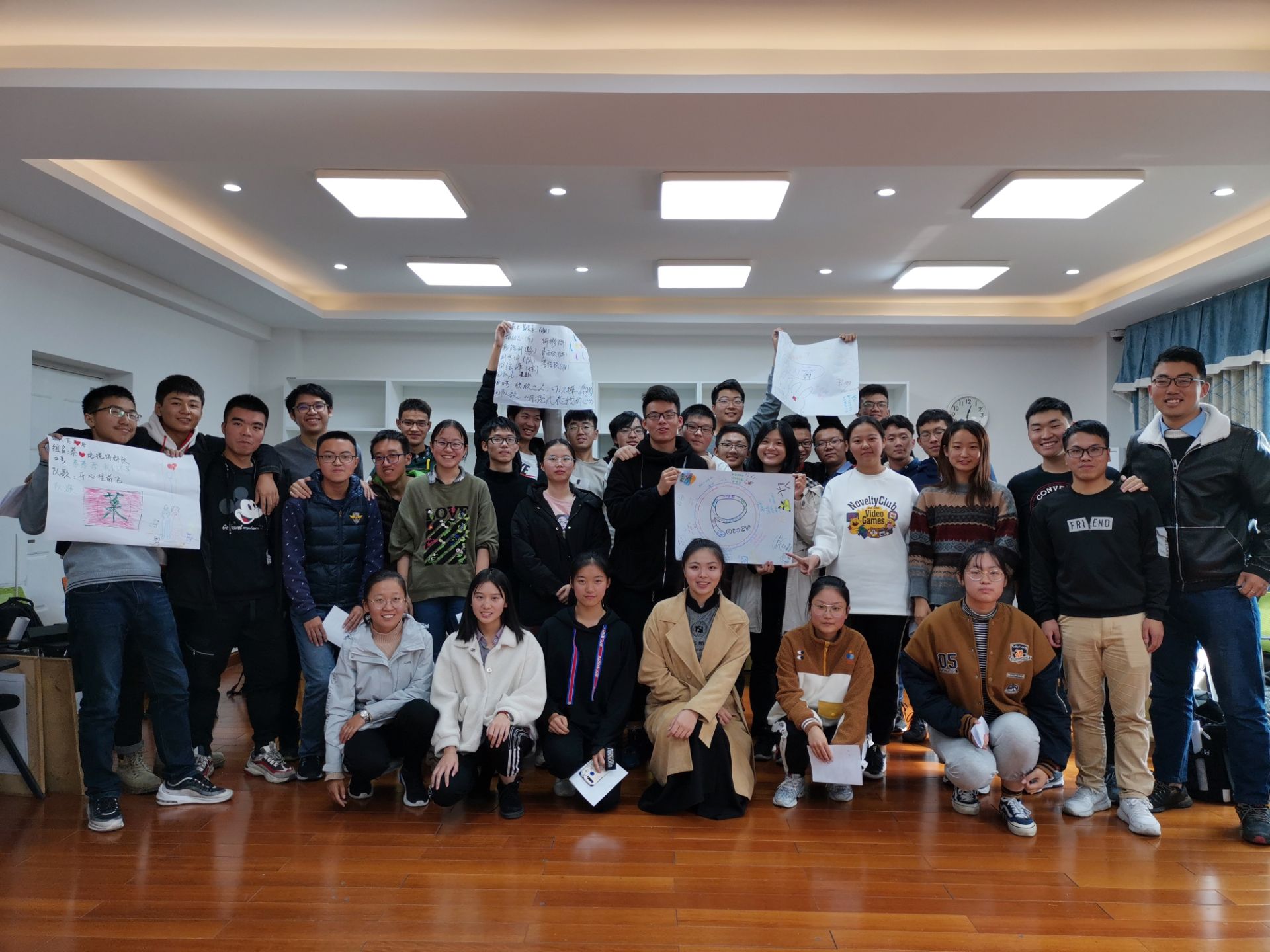 活动伊始,老师让同学们进行简单有趣的小互动活跃气氛。接着随机分为四组,正式开始游戏环节。每组同学25分钟内将队名、口号、队歌、队旗和队姿确定下来并分组展示,更是通过姓名滚雪球的游戏增进彼此之间的了解。第二个环节,每个同学都将来到中南近三个月以来所遇开心的事和不开心的事分别画在一张纸上。在短暂的绘画时间后,每个同学都向大家诉说自己心中所想,分享快乐与愁思。两轮环节下来,教室中欢声笑语不断,气氛活跃轻松,趣味盎然。最后,老师提出了四个在大学中所有同学都应该认真思考的问题——“大学是什么”、“要在大学里做什么”、“什么是目前做不到的”、“在以后想要从事什么工作”,引发大家思考。