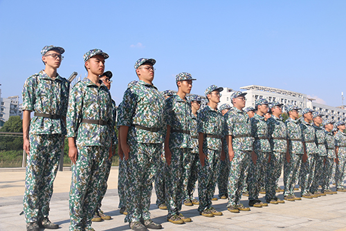 清晨,身披第一缕霞光,我们在林荫小道集合。教官已早早地站在队伍前列,我们携着水瓶,往训练场地进发。到达训练场就正式开始了一天的训练任务。各个项目接踵而至,站军姿、立正、跨立、蹲起、脱帽,从手脚还不太协调,到渐渐熟悉各种动作,太阳从山脚爬上山顶,汗滴由头顶滑落到下巴。