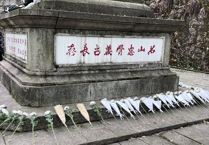 志愿者们来到了岳麓山七十三军抗战阵亡将士公墓前,首先瞻仰了抗战烈士纪念碑,青山处处埋忠骨,在巍峨的抗战烈士纪念碑前,同学们排列整齐、神情肃穆,难掩对抗战烈士的悲痛与感激之情。随后,在一位同学的介绍下,志愿者们了解了国民革命军第七十三军的作战经历以及抗战历史。最后,青志协成员与志愿者们怀着沉重的心情开始了祭扫,每人手持白菊,有序放在纪念碑旁,并向烈士公墓深深鞠躬,表达着对抗战烈士的深深缅怀和崇高敬意。