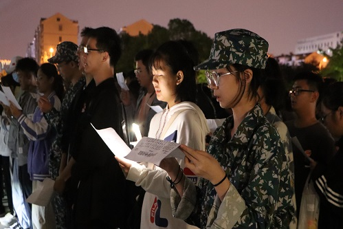 晚上七点,同学们吃过晚饭后,在辅导员和教官们及学长学姐们的组织下,在伟德源自英国1946体育馆南门集合完毕,开始红歌的练习。今天在上次训练的基础上加入了手部的动作,大家热情高涨,训练井然有序。