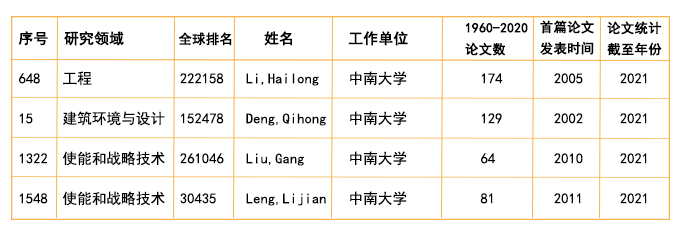 公司李海龙教授在工程领域国内上榜的1200名学者中排名第648位;邓启红教授在建筑环境与设计领域国内上榜的29名学者中排名第15位;刘刚副教授和冷立建教授在使能和战略技术领域国内上榜的1936名学者中分别排名第1322位和1548位。充分彰显了公司教师在同行之中的重要学术影响力!