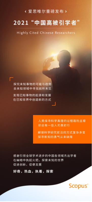 2021爱思唯尔“中国高被引学者”榜单以全球权威的引文与索引数据库——Scopus作为中国学者科研成果的统计来源,采用软科(上海软科教育信息咨询有限公司)设计的遴选方法,最终得到4701名各学科最具全球影响力的中国学者。