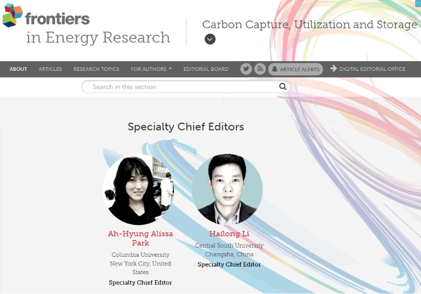 最近,公司李海龙教授应Frontiers出版社(引用率排名全球第3位)邀请担任Frontiers in Energy Research 期刊CCUS栏目主编。Frontiers in Energy Research(IF=3.858)是瑞士 Frontiers出版社旗下的能源类期刊,包括先进清洁燃料、生物质能、CCUS、电化学能、燃料电池、氢能、核能、太阳能、风能、能源系统、能源政策等13个栏目。