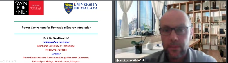 大会特邀报告环节邀请到了美国Texas A&M University的Ying Li教授、华中科技大学赵永椿教授、澳大利亚Swinburne University of Technology的Saad Mekhilef教授、新加坡Nanyang Technological University的Ng Yin Kwee教授。他们分别做了题为《Catalytic Conversion of CO2 to Valuable Products》《Trace elements emission and control during coal combustion》《Power converters for grid integration》《Evaluation of three potential machine learning algorithms and limitations for predicting the wake characteristics of a wind turbine》的大会特邀报告,报告分别由李海龙教授和湖南大学王冬波教授主持。