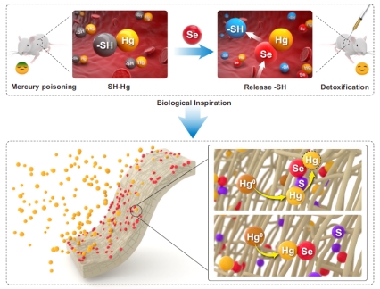 汞具有极强的挥发性、巨毒性、生物累积性,对人类健康和生态环境已造成了严重的危害。燃煤是最主要的人为汞排放源,其污染防治工作更是重中之重。燃煤烟气中的汞主要以Hg0、Hg2+和Hgp形式存在,其中,Hg2+和Hgp可被电厂现有的湿法脱硫和除尘等污染物控制装置协同脱除,而Hg0易挥发、难溶于水,是燃煤汞污染防治的重点和难点。受生物体内汞解毒过程(硒汞拮抗效应)启发,该团队提出了一种仿生硒界面活化强化脱汞的新方法,汞吸附容量和吸附速率均打破世界记录。该方法烟气适用性强,可广泛应用于不同污染物控制装置配置、不同工业烟气条件的汞污染控制。