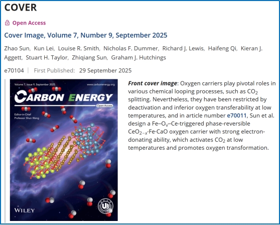 近日,公司孙志强教授团队在国际权威期刊《碳能源》(Carbon Energy,IF: 24.2)上发表了题为“调制Fe-Ov-Ce触发的可逆相变载氧体以增强化学链CO2裂解”(Tailoring Fe-Ov-Ce triggered phase-reversible oxygen carrier for intensified chemical looping CO2 splitting)的研究论文,并被选为期刊封面论文。孙朝副教授、2021级博士生雷坤为共同第一作者,孙志强教授、英国卡迪夫大学Graham J. Hutchings教授为共同通讯作者,bevictor伟德为第一署名单位和通讯单位。